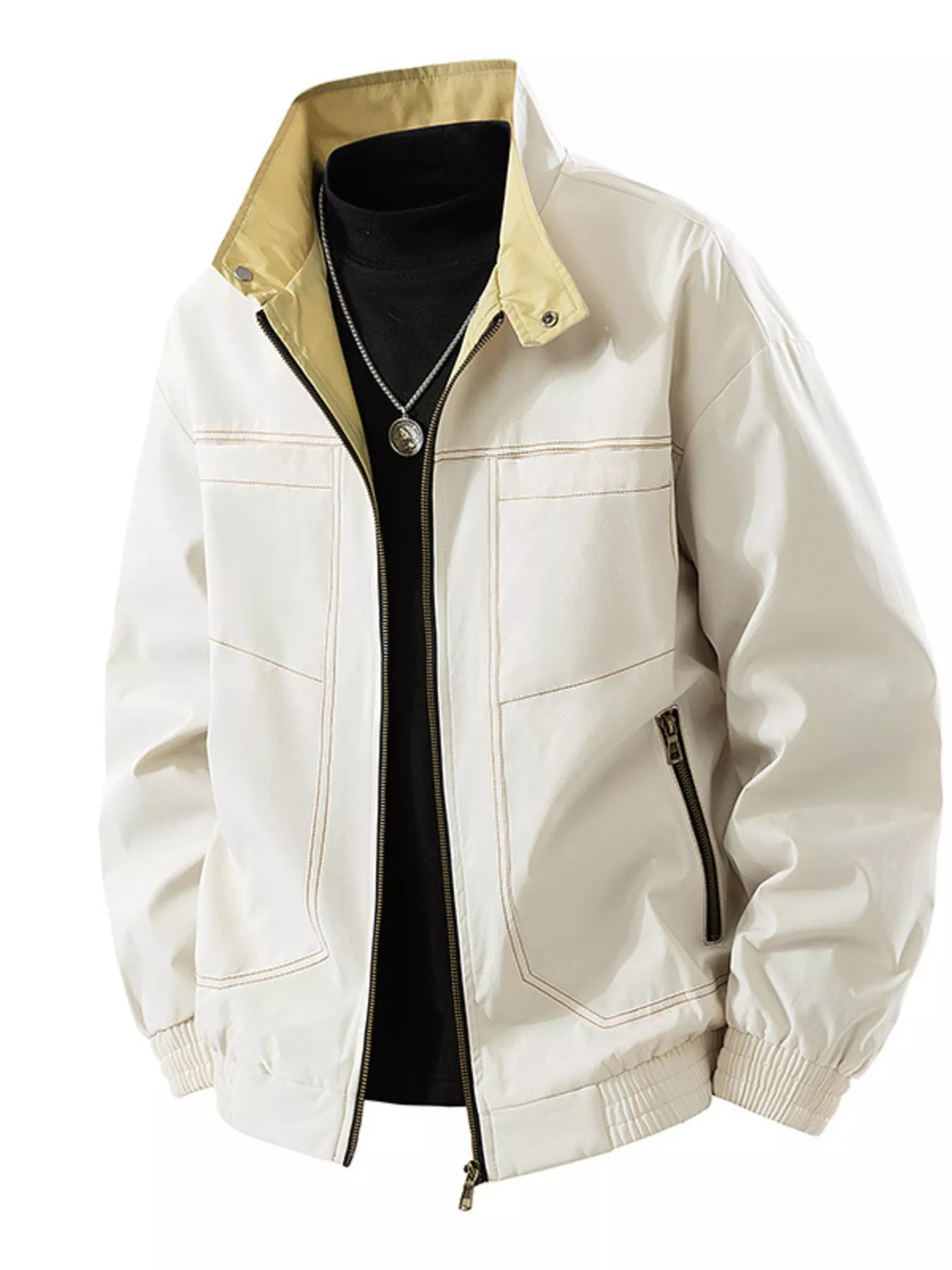 Men's Plus Size Zip Up Contrast Collar Casual Jacket