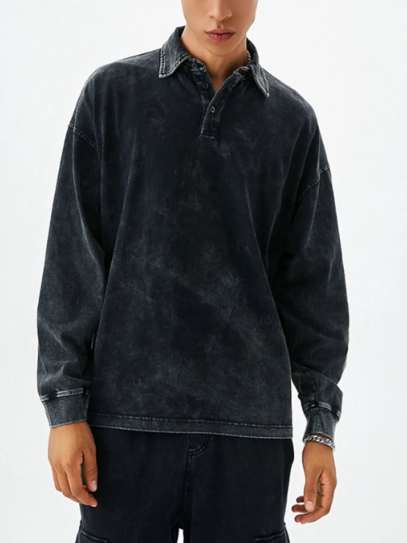 Men's Washed Long Sleeve Polo Shirt