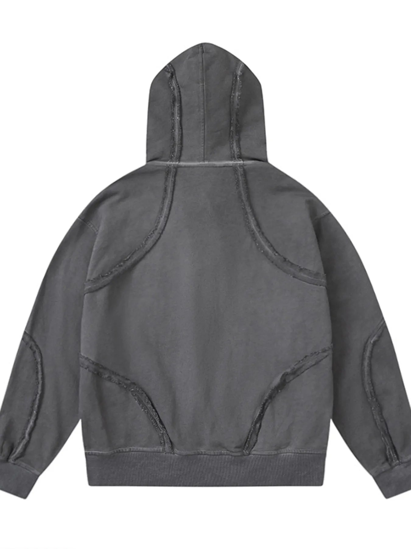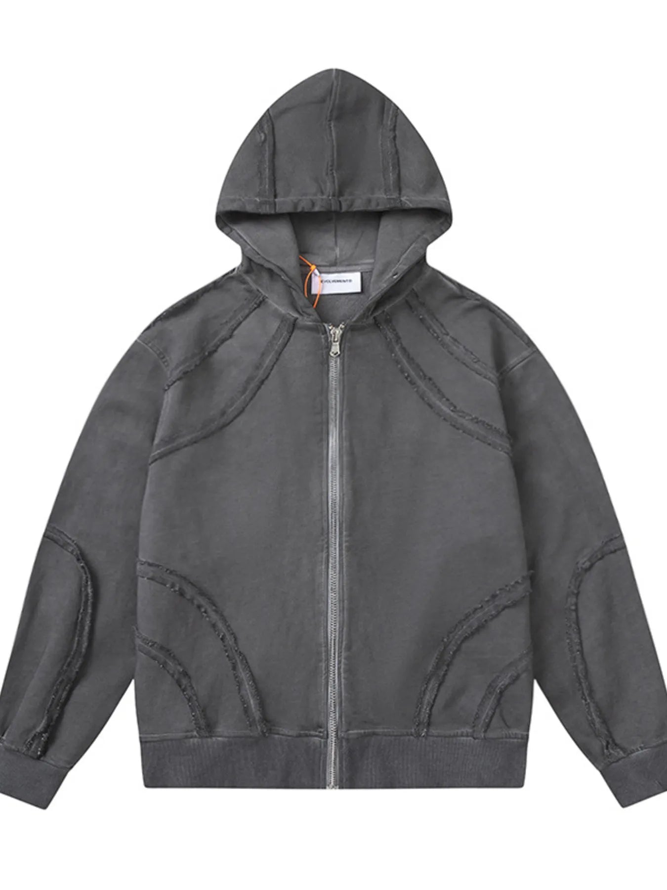 Men's Washed Zip-Up Hoodie with Raw Edge Details