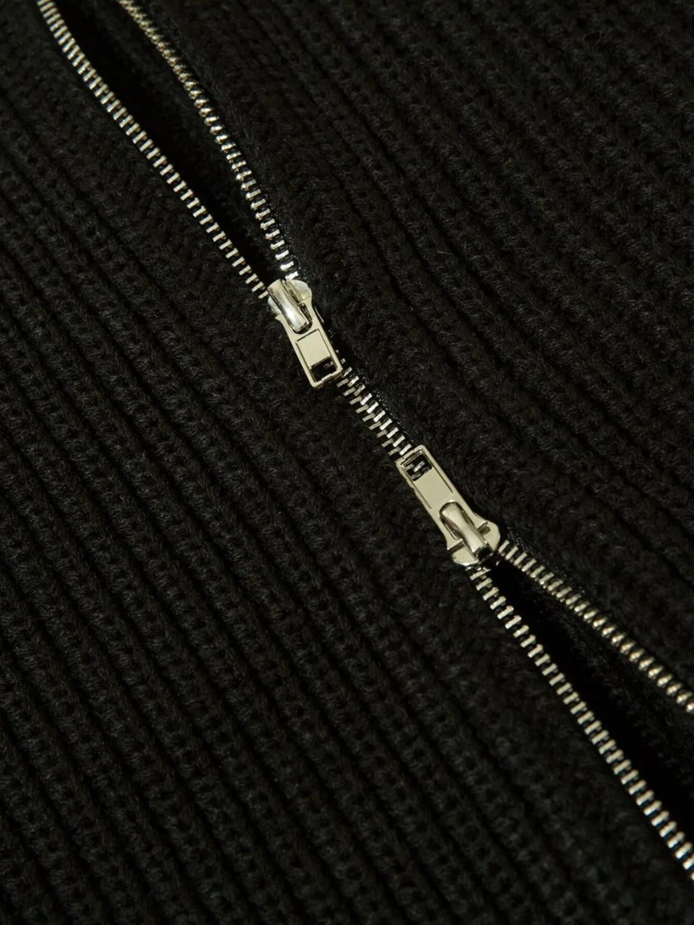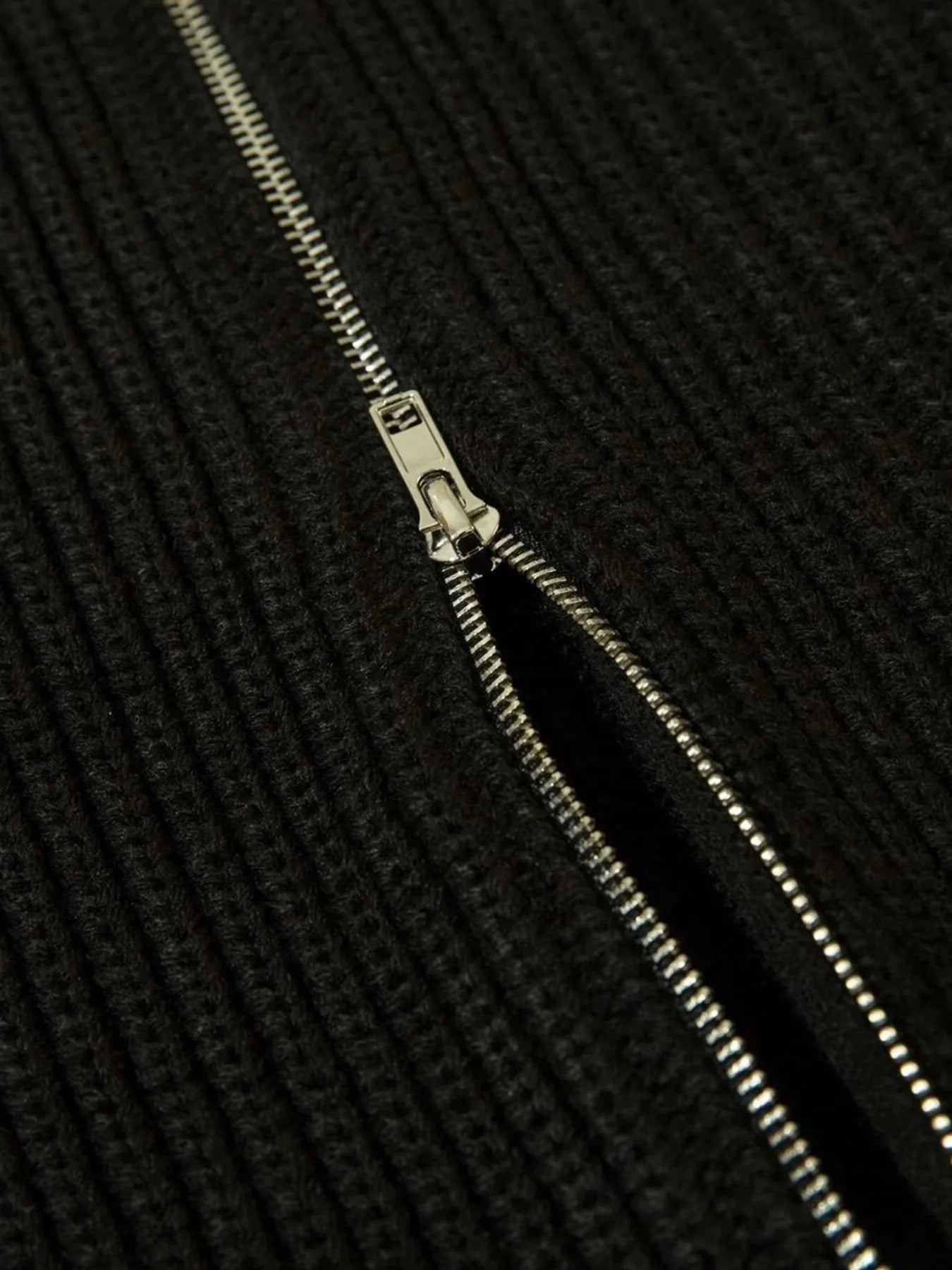 The Ribbed Zip Pullover combines timeless simplicity with a modern edge. Designed from soft ribbed polyester fabric, it offers a slightly stretchy feel for comfort and ease of movement. The front zipper detail adds a sleek finish, making it a versatile essential for casual days or layered looks.