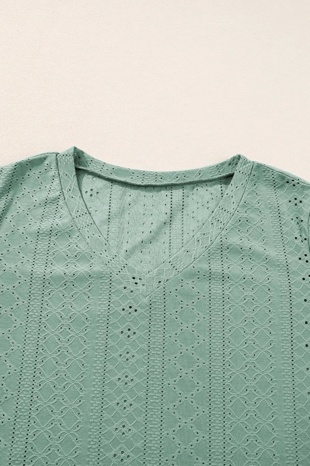 Plus Size Eyelet V-Neck Petal Sleeve Blouse
