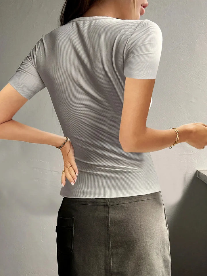 Effortless and refined — this quarter button top brings a timeless touch to everyday dressing. Crafted from a soft, lightly stretchy fabric, it offers all-day comfort while maintaining a flattering silhouette. Perfect for pairing with your favorite jeans, skirts, or tailored trousers for a clean, modern look.