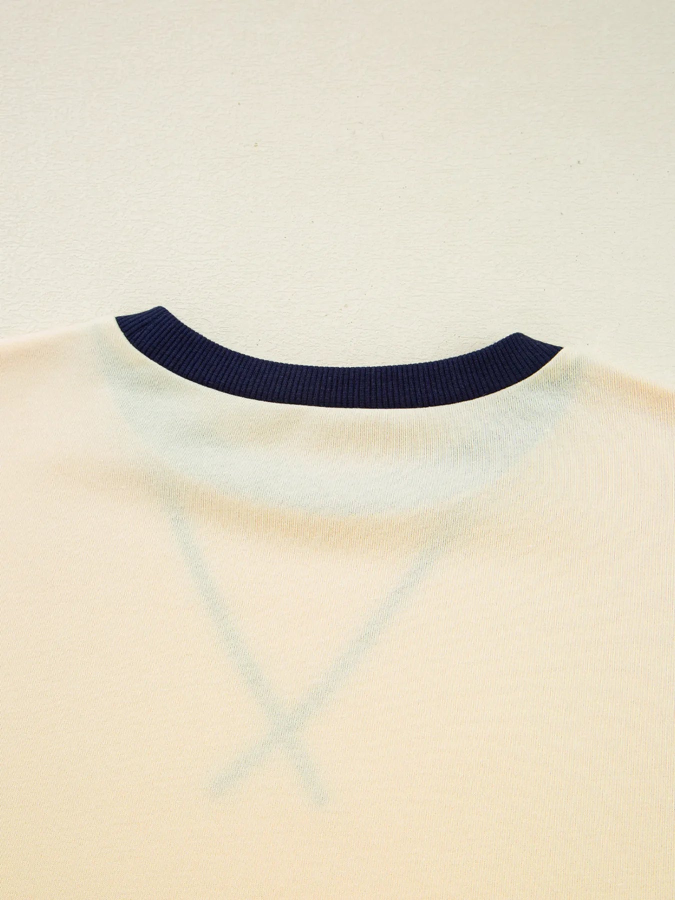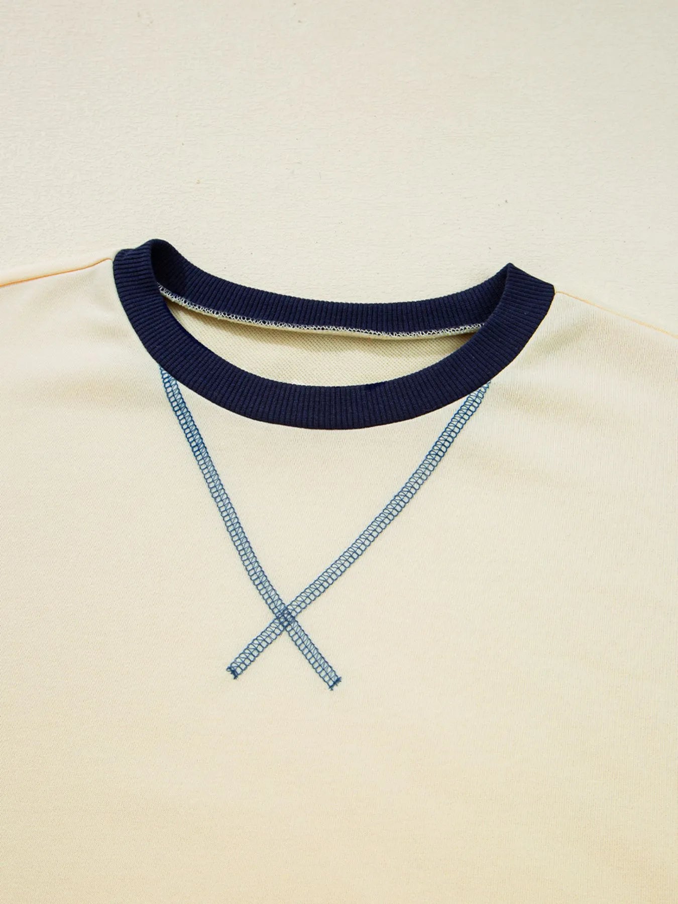 Striped Patchwork Long Sleeve Round Neck Two-in-one Top