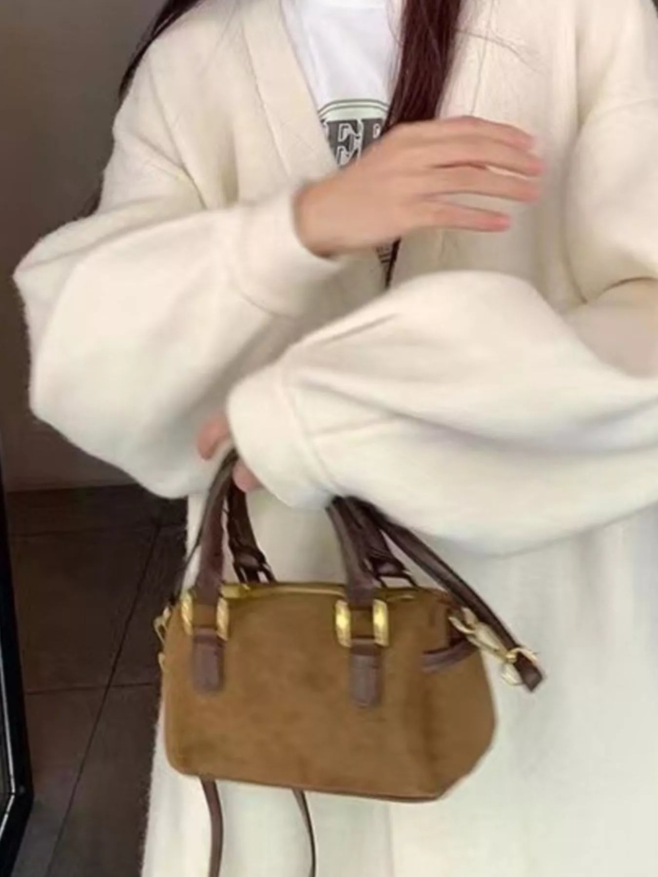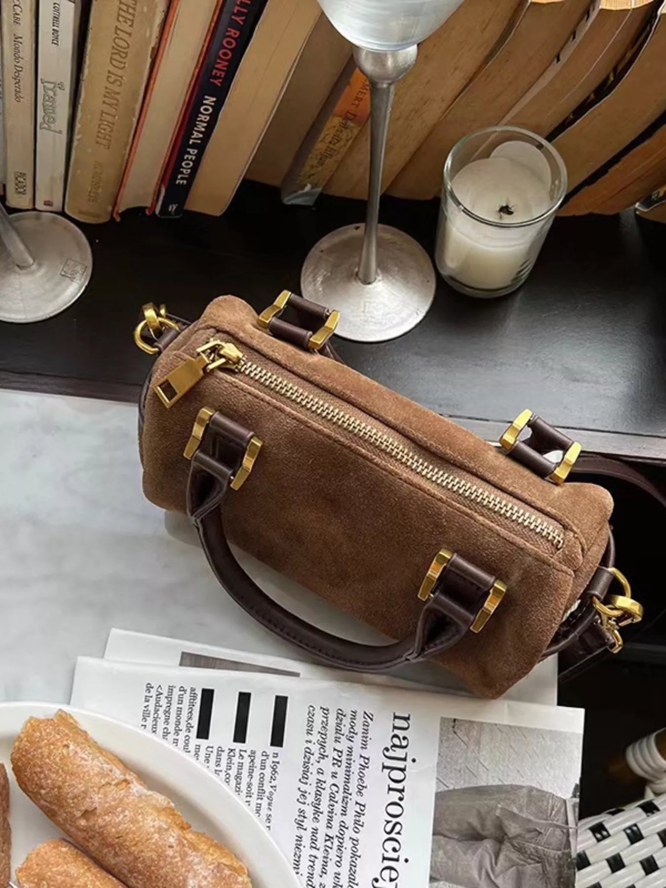 A chic small-sized mini bag crafted from a stylish blend of PU leather and suede. Compact and elegant, this piece is perfect for carrying everyday essentials while adding a refined touch to any outfit.
